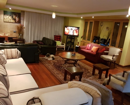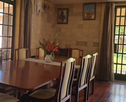 An elegant country design Guest House surrounded different trees & flowers., In the serene, quiet private suburbs of Karen – 30 minutes from Jomo Kenyatta International Airport conveniently located [5] five minutes’ walk to THE HUB- MALL & THE OLD KAREN [DUKAS].